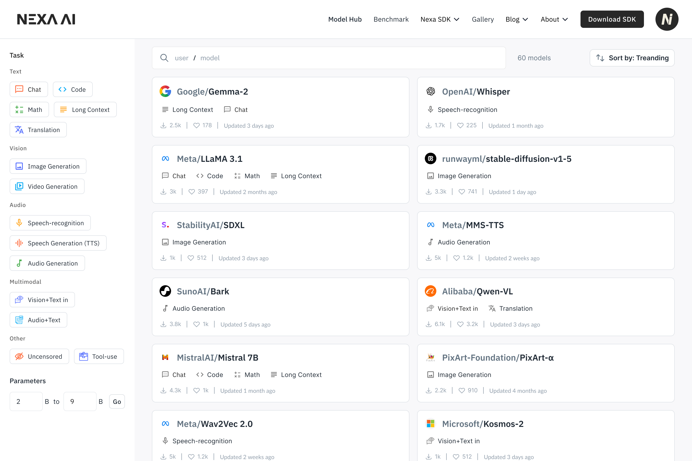 A unified interface makes it easy to explore or quickly filter multimodal models—cutting through noise and surfacing what’s relevant.